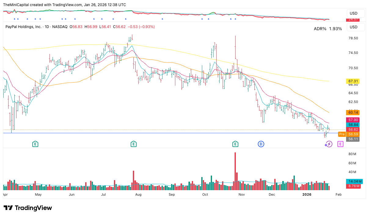 PYPL: 10.3% | Avg $57.19 | -1.0%